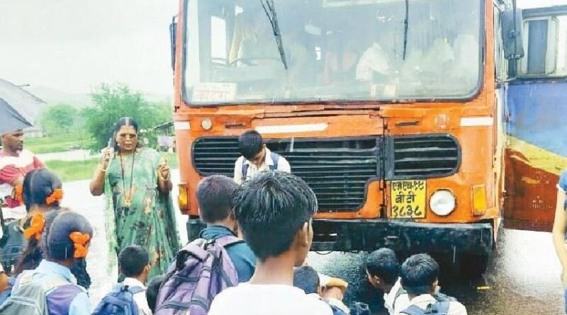 Students Stop ST Bus to Protest Lack of Transport.
